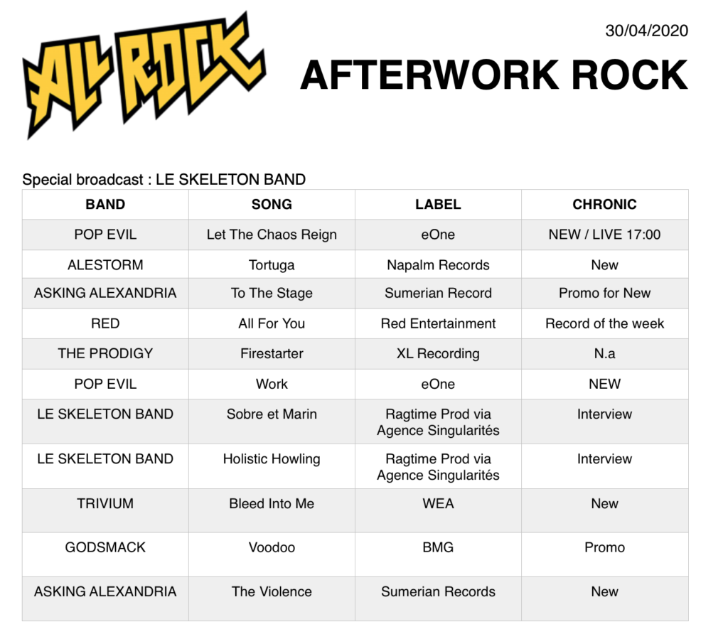 Accueil REPLAY L’Afterwork Rock avec LE SKELETON BAND du 30/04/2020 REPLAY L’Afterwork Rock avec LE SKELETON BAND du 30/04/2020 Par Pete Circle - 30 avril 2020 0 FacebookTwitterPinterestWhatsApp /replay/20200430AR.mp3 TENDANCES Imminence prépare « The Black Finale » — concert unique à... NEWS 27 novembre 2025 XTRM Podcast du 27 novembre 2025 – Interview d’Imminence REPLAY 27 novembre 2025 💪 Rise of the Northstar fait résonner « A.I.R. Max »... NEWS 1 septembre 2025 XTRM Podcast du 26 novembre 2025 – Live Report METALEARTH SAMEDI... L'actu de Where The Promo Is 26 novembre 2025 XTRM Podcast du 25 novembre 2025 – Live Report THE INSPECTOR... LIVE REPORT 25 novembre 2025 @allrockmedia 815 Suiveurs Suivre
