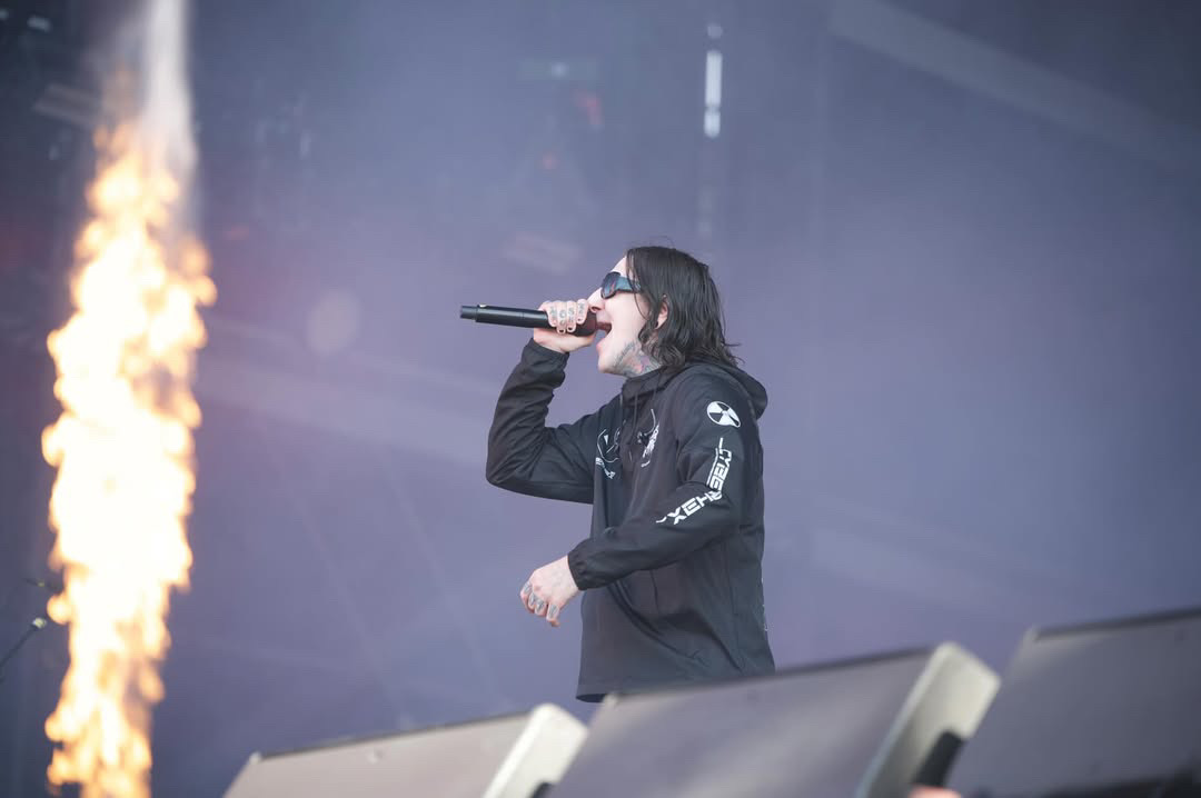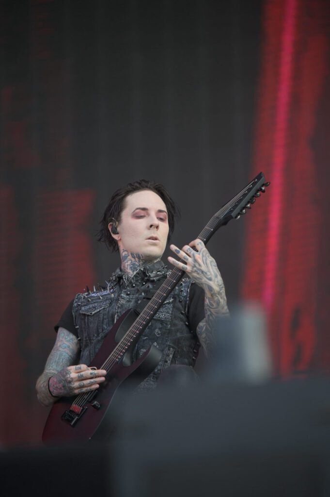Il lâche : “On s’appelle Motionless in White”, et il est content d’être de retour ! Il demande de lever les bras en l’air ! Il va envoyer du heavy shit ! Et là, c’est un mur de flammes auquel on a droit ! Énormément de pyro sur le set, renforçant une scénographie blindée d’écrans !