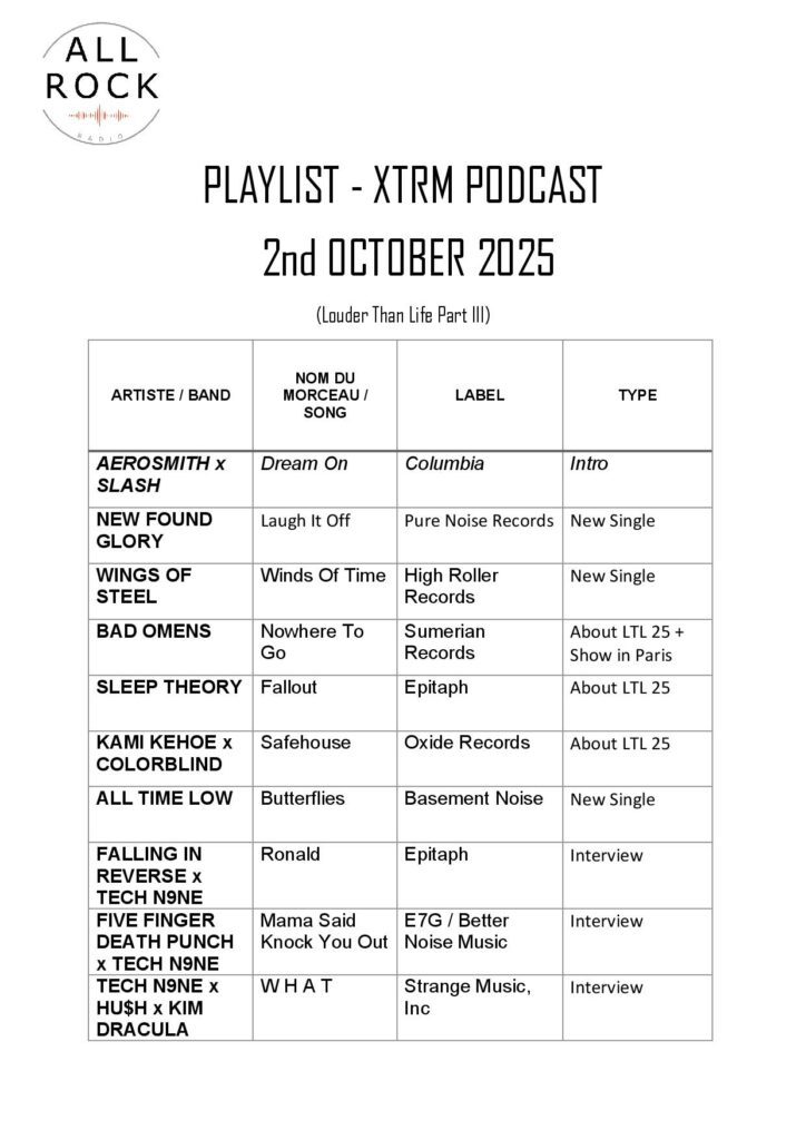 Accueil REPLAY XTRM Podcast du 2 octobre 2025 avec TECH N9NE (Louder Than Life... REPLAYTendance XTRM Podcast du 2 octobre 2025 avec TECH N9NE (Louder Than Life interviews) Par Pete Circle - 2 octobre 2025 0 FacebookTwitterPinterestWhatsApp /replay/20251002EP8.mp3 TENDANCES Imminence prépare « The Black Finale » — concert unique à... NEWS 27 novembre 2025 XTRM Podcast du 27 novembre 2025 – Interview d’Imminence REPLAY 27 novembre 2025 💪 Rise of the Northstar fait résonner « A.I.R. Max »... NEWS 1 septembre 2025 XTRM Podcast du 26 novembre 2025 – Live Report METALEARTH SAMEDI... L'actu de Where The Promo Is 26 novembre 2025 XTRM Podcast du 25 novembre 2025 – Live Report THE INSPECTOR... LIVE REPORT 25 novembre 2025 @allrockmedia 815 Suiveurs Suivre