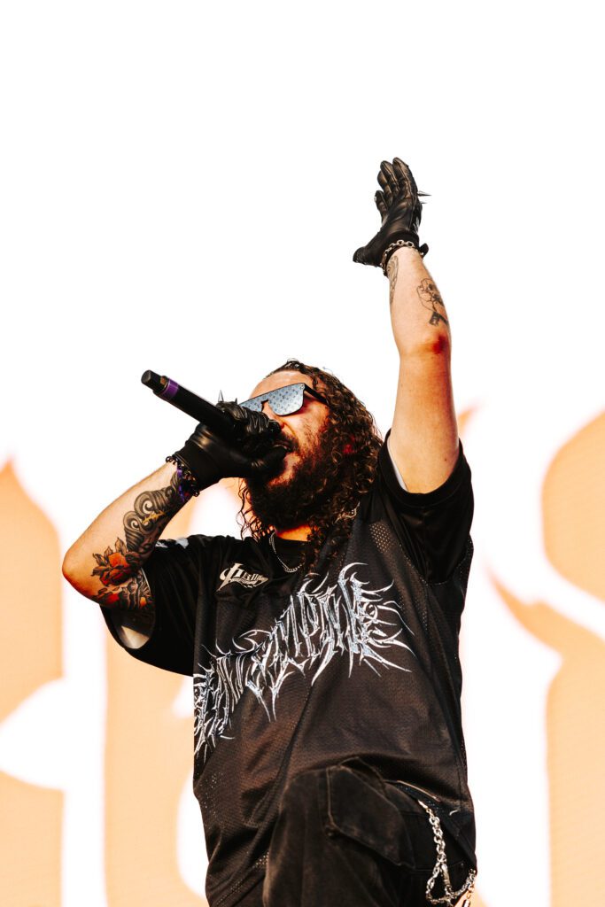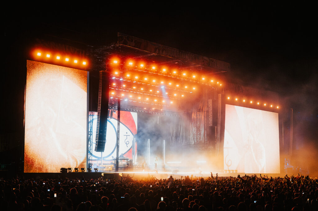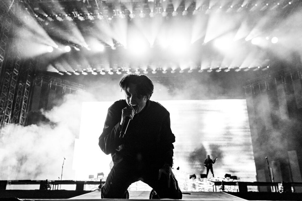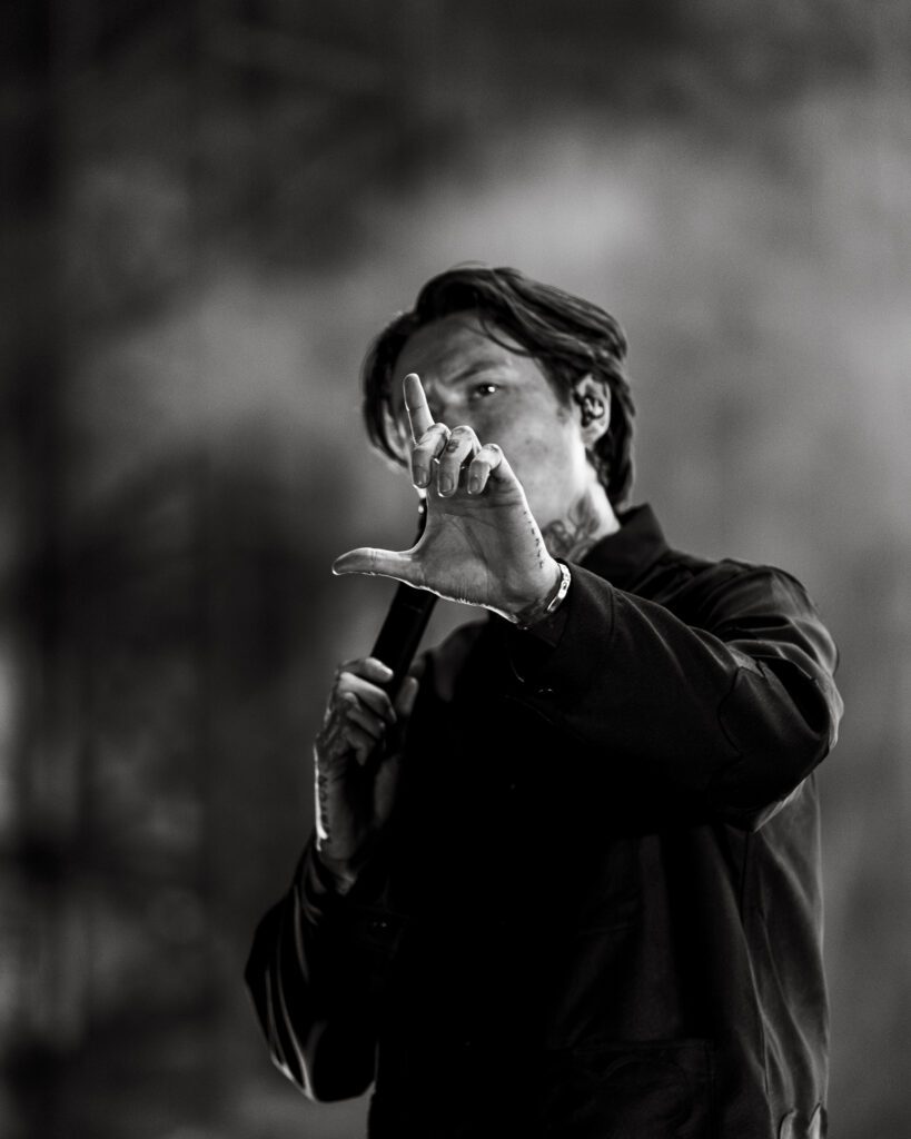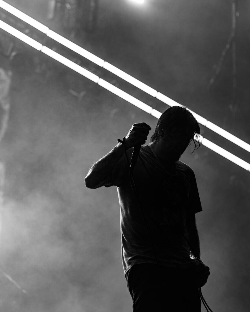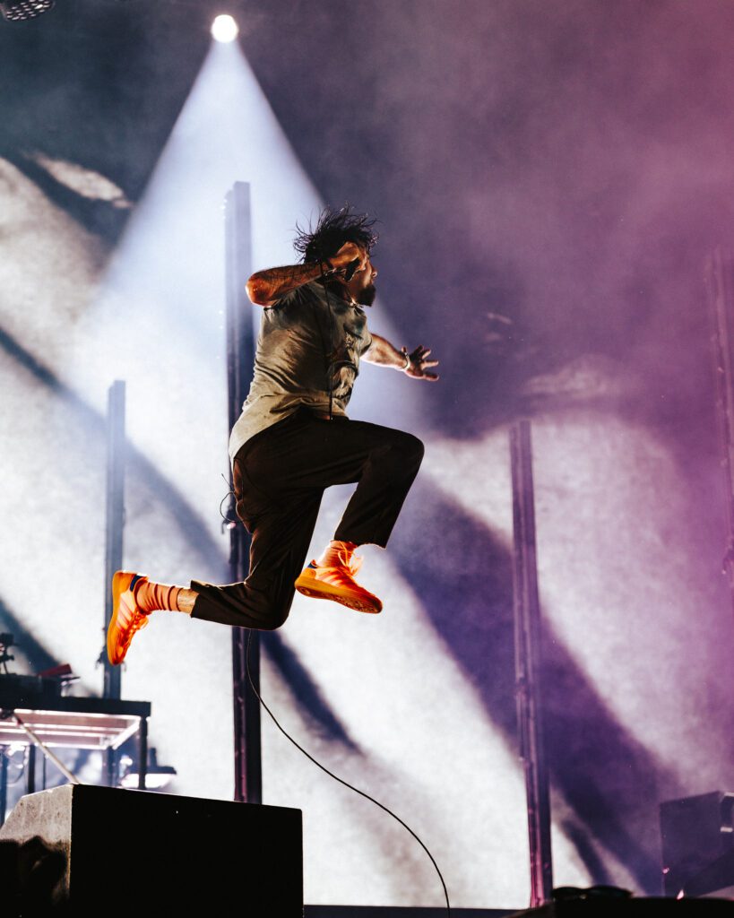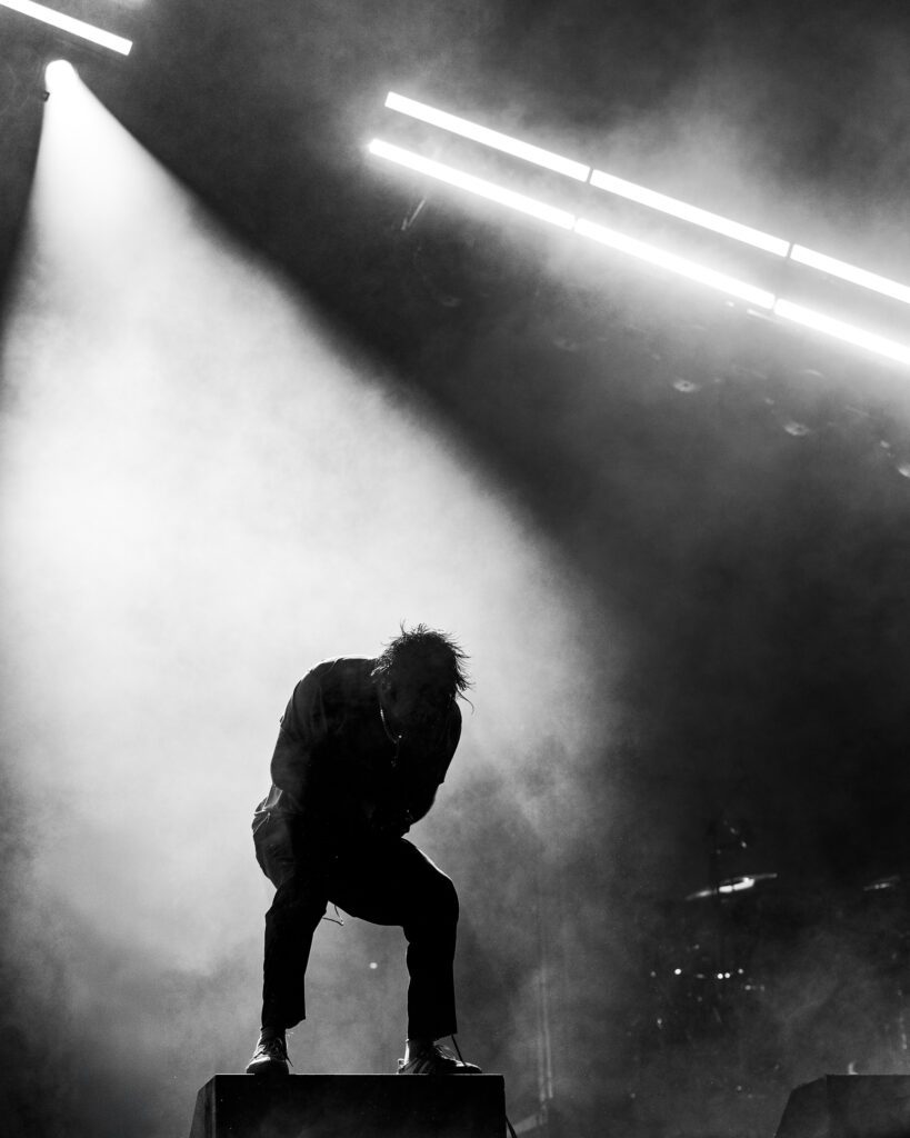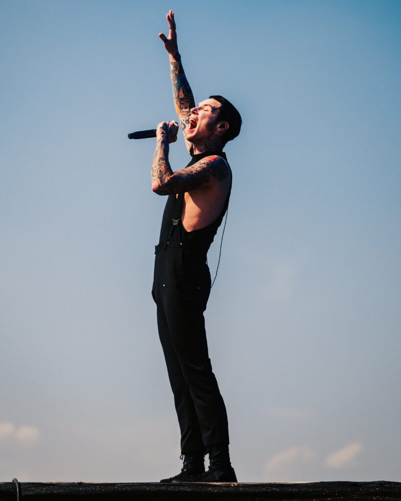 As night fell, Bad Omens transformed the Main Stage into a cathedral of shadows. The haunting intro of Grey echoed out, followed by Concrete Jungle and Artificial Suicide. The production was stunning — cold lights, cinematic visuals, white strobes slicing through the dark.