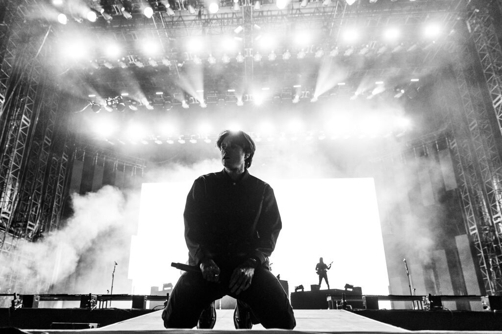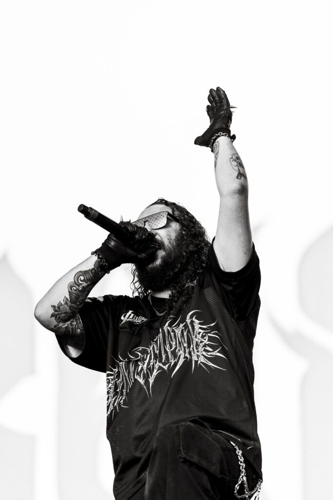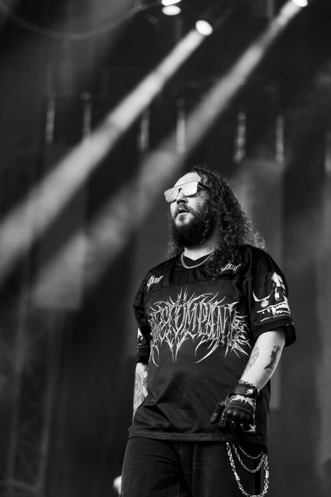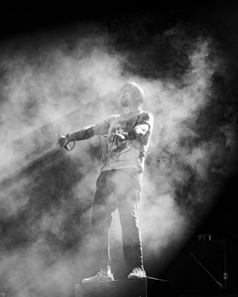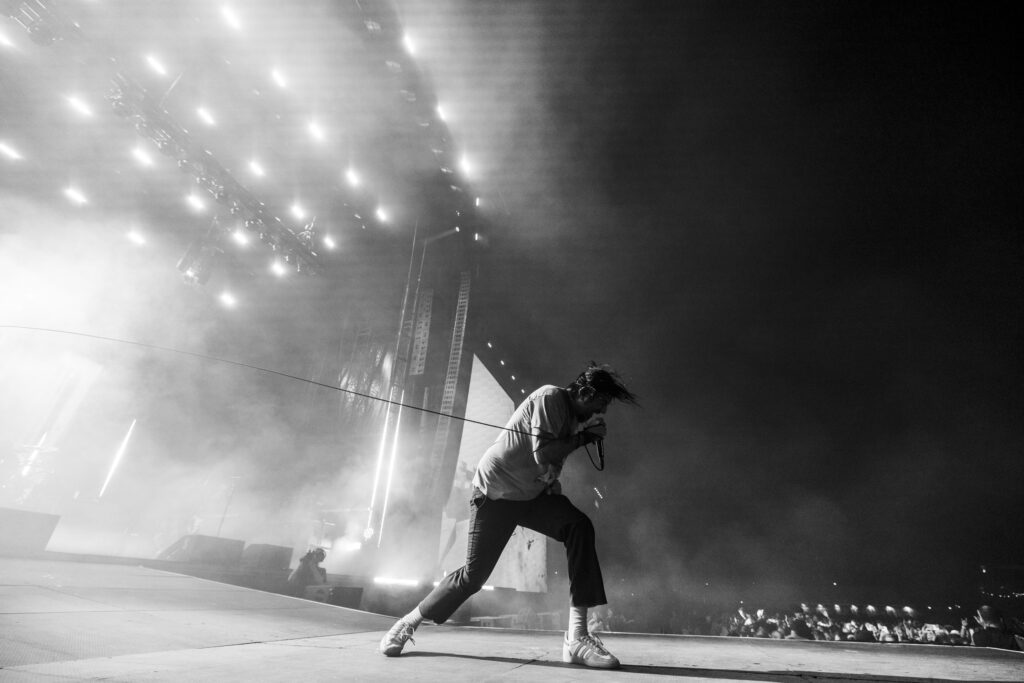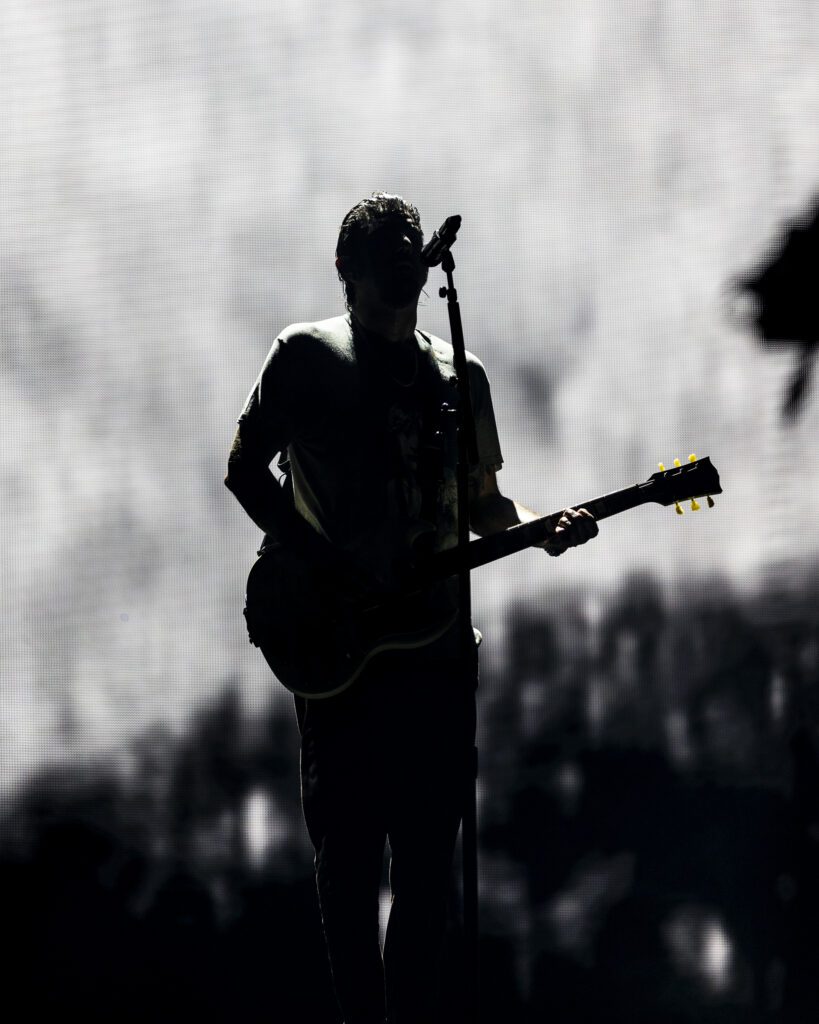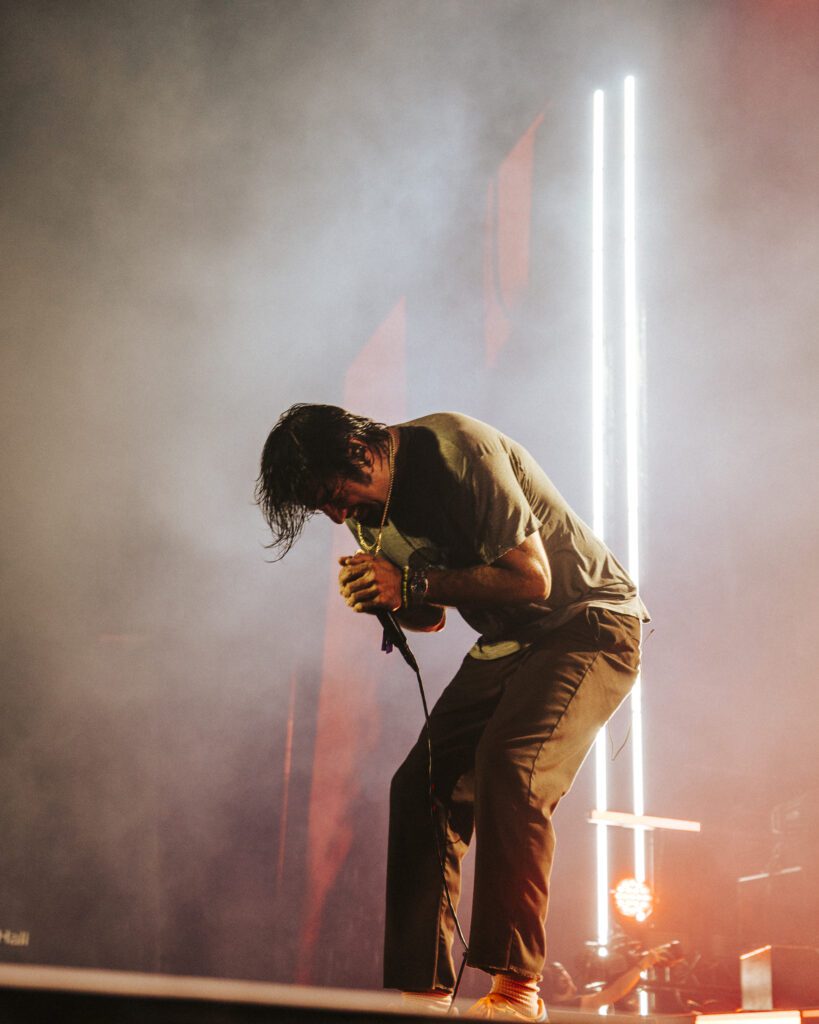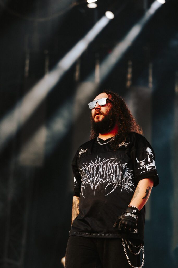 As night fell, Bad Omens transformed the Main Stage into a cathedral of shadows. The haunting intro of Grey echoed out, followed by Concrete Jungle and Artificial Suicide. The production was stunning — cold lights, cinematic visuals, white strobes slicing through the dark.