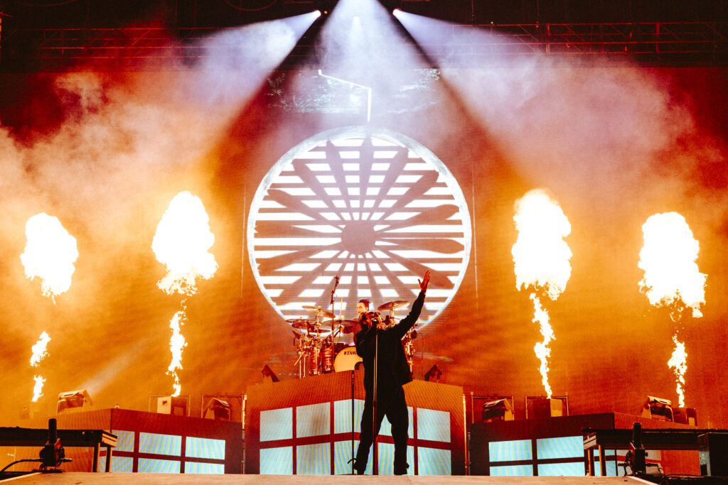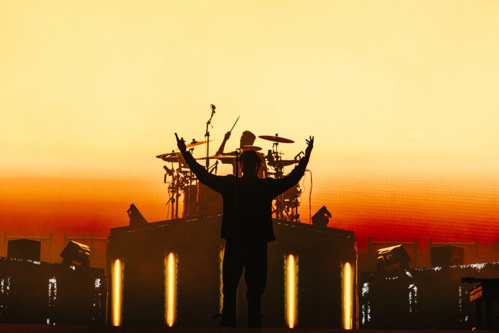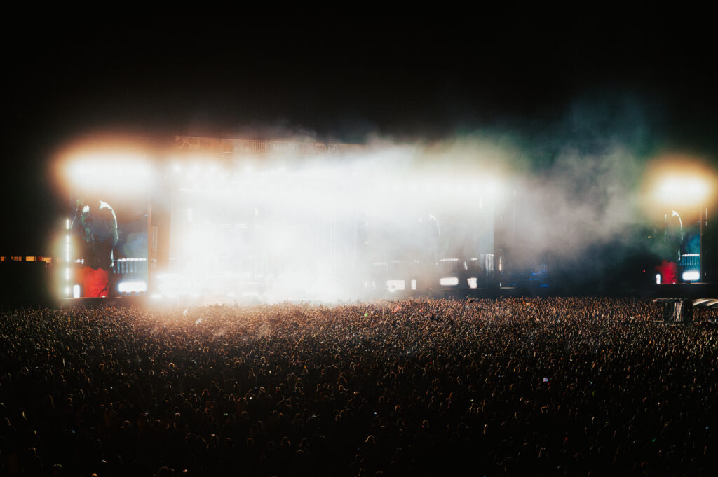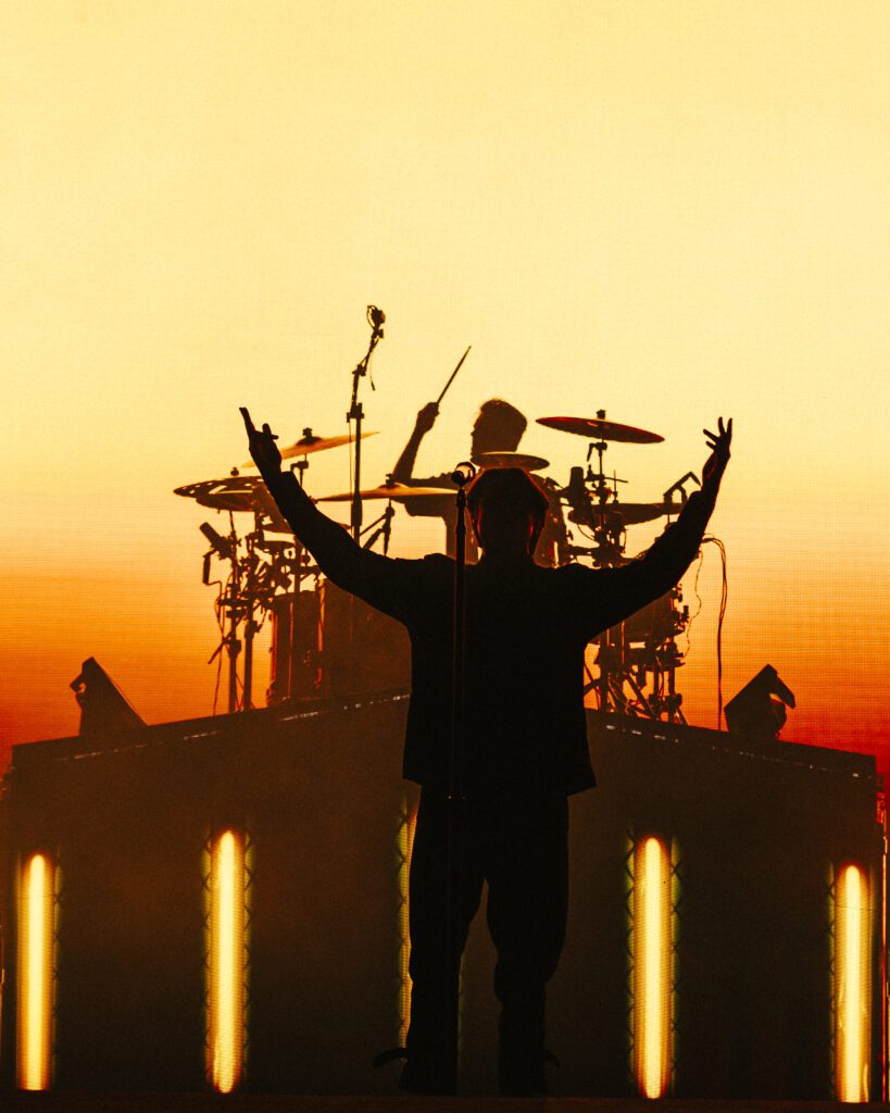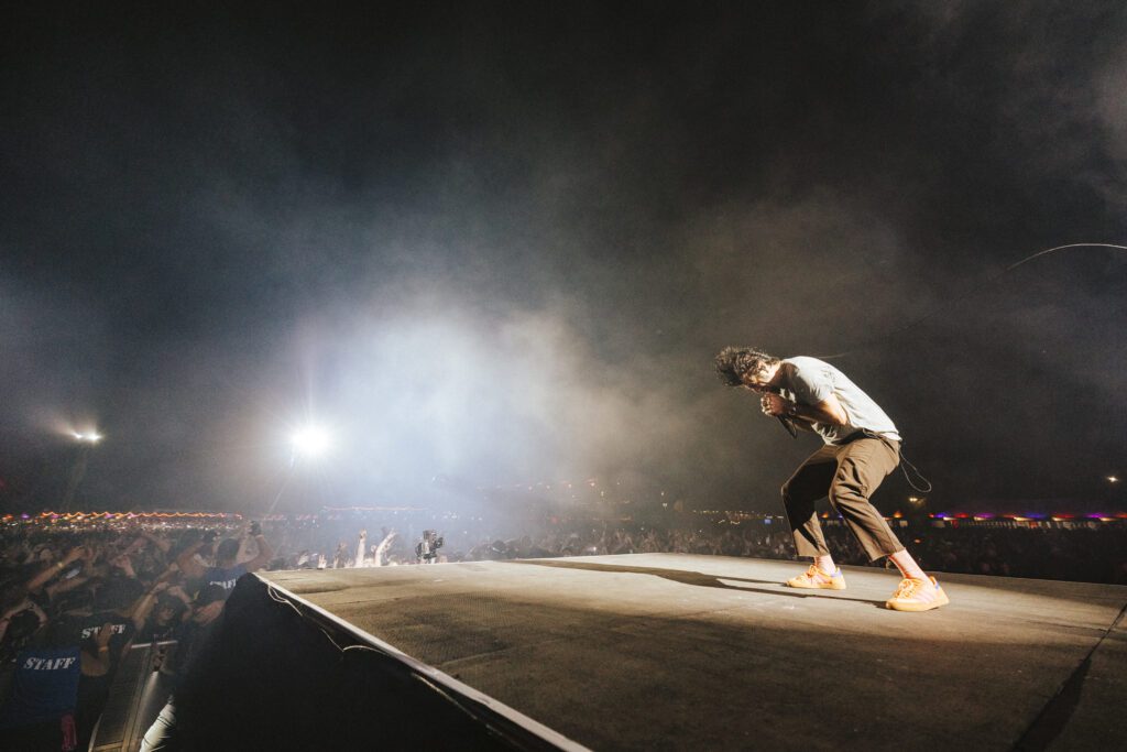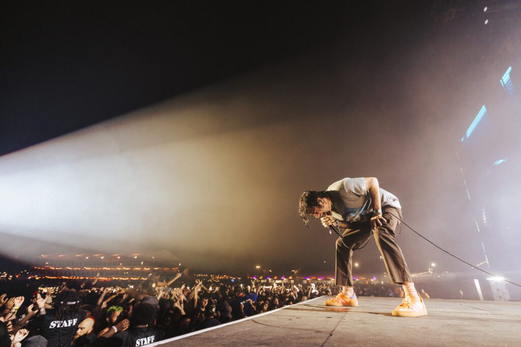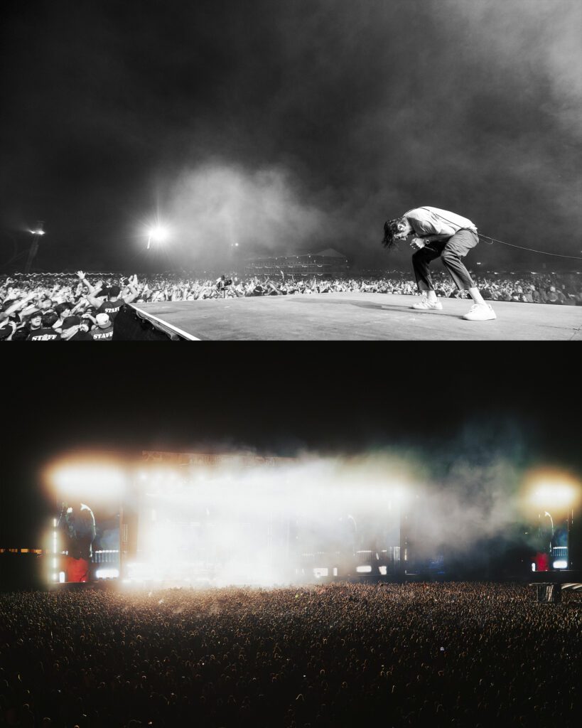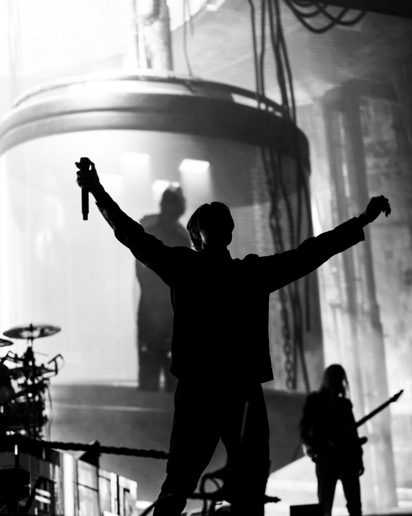 As night fell, Bad Omens transformed the Main Stage into a cathedral of shadows. The haunting intro of Grey echoed out, followed by Concrete Jungle and Artificial Suicide. The production was stunning — cold lights, cinematic visuals, white strobes slicing through the dark.