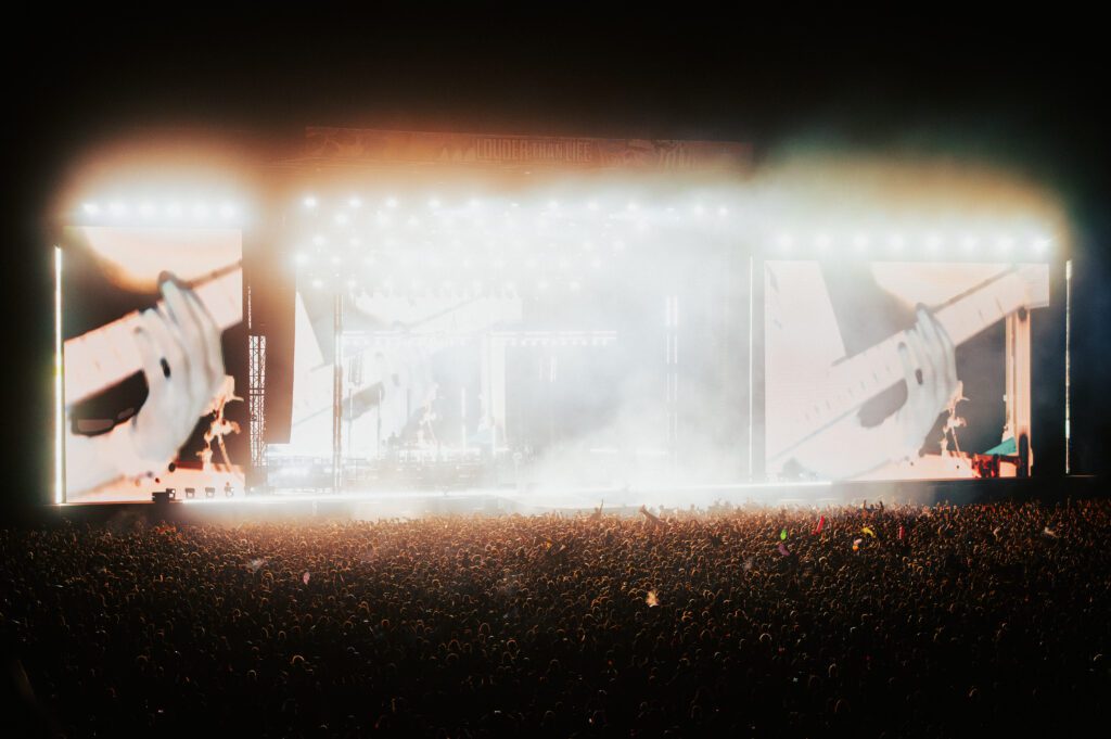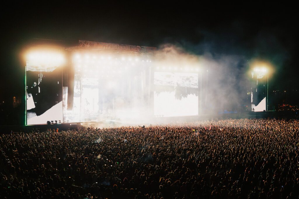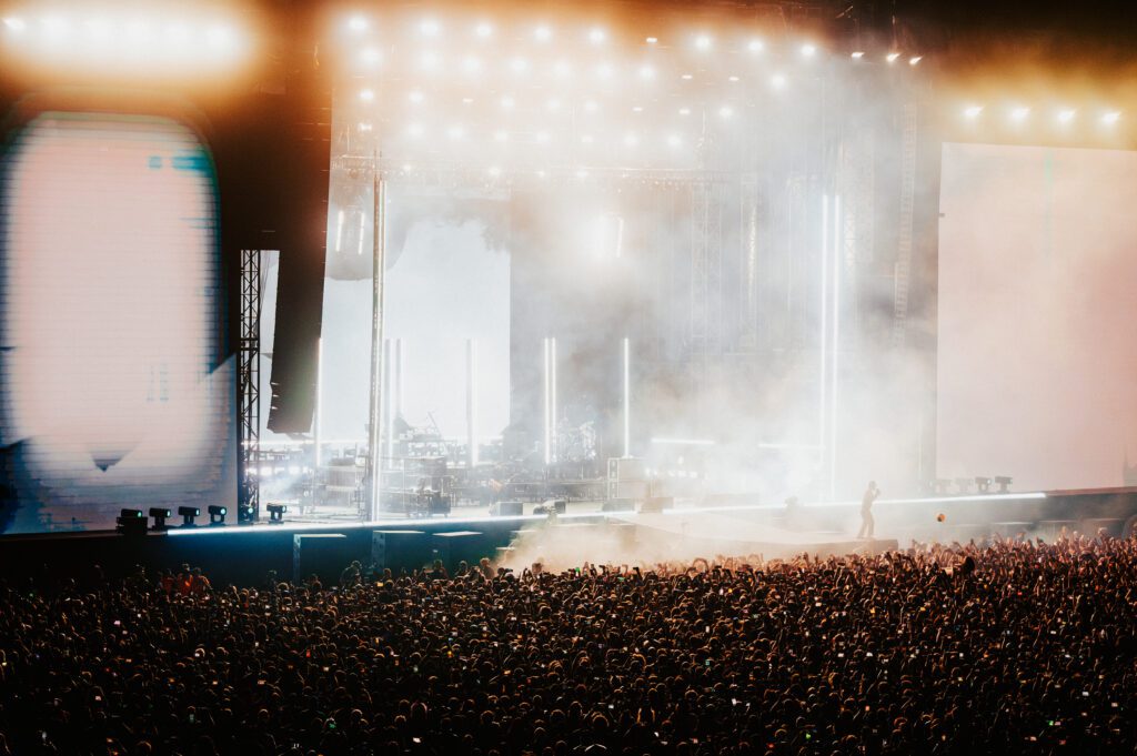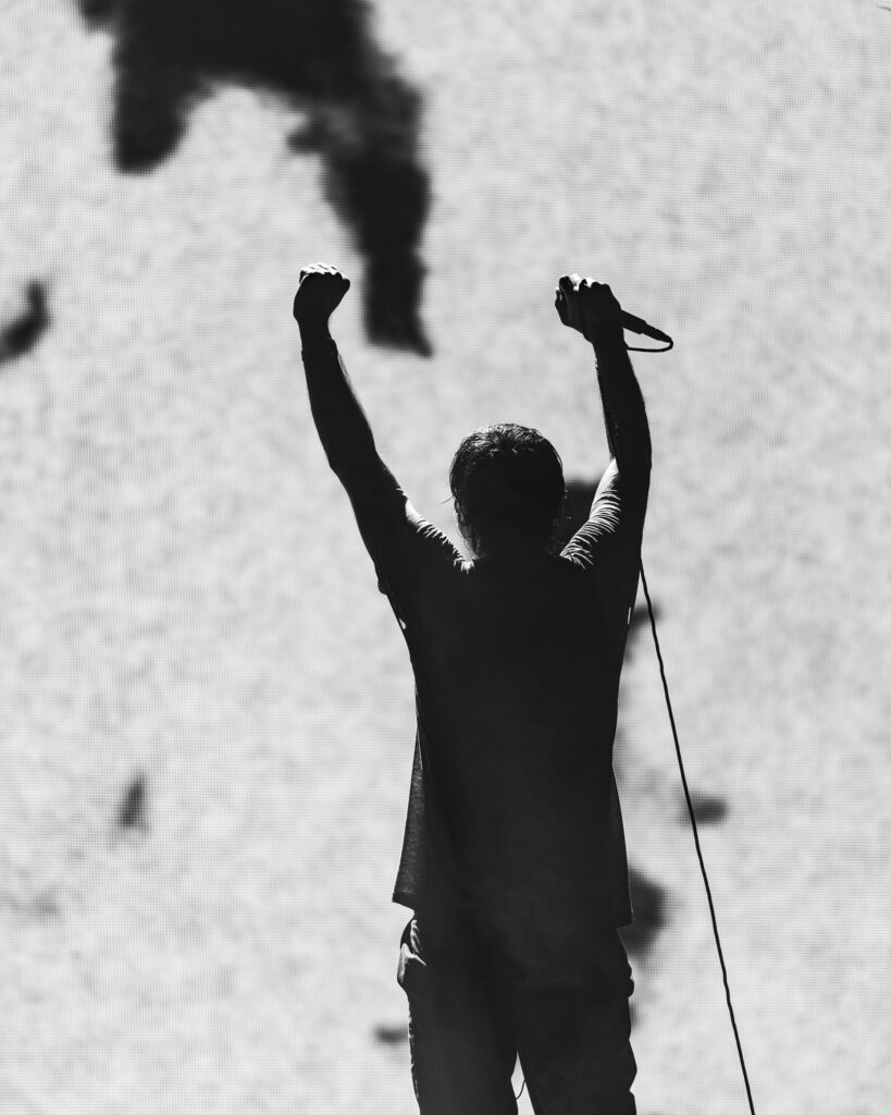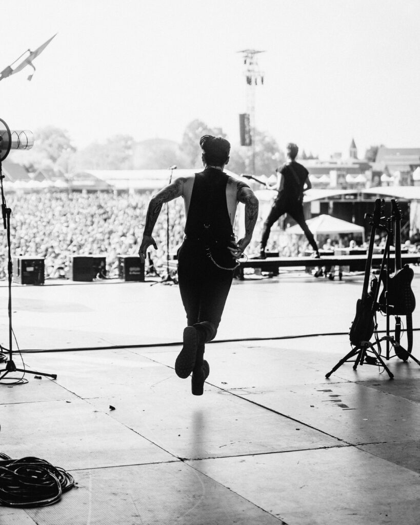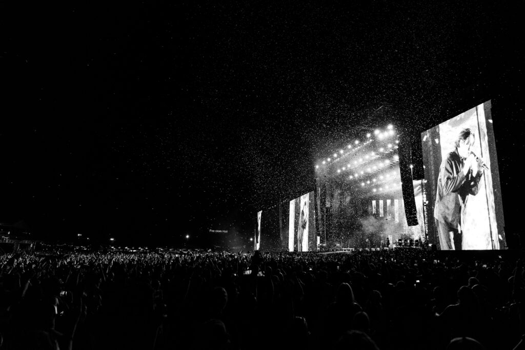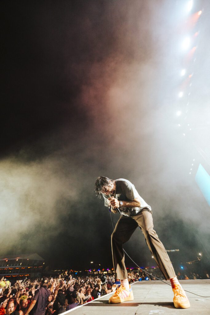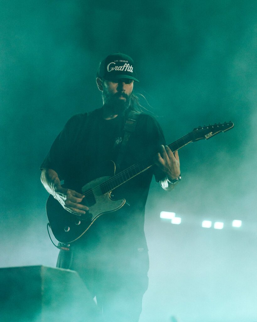 As night fell, Bad Omens transformed the Main Stage into a cathedral of shadows. The haunting intro of Grey echoed out, followed by Concrete Jungle and Artificial Suicide. The production was stunning — cold lights, cinematic visuals, white strobes slicing through the dark.