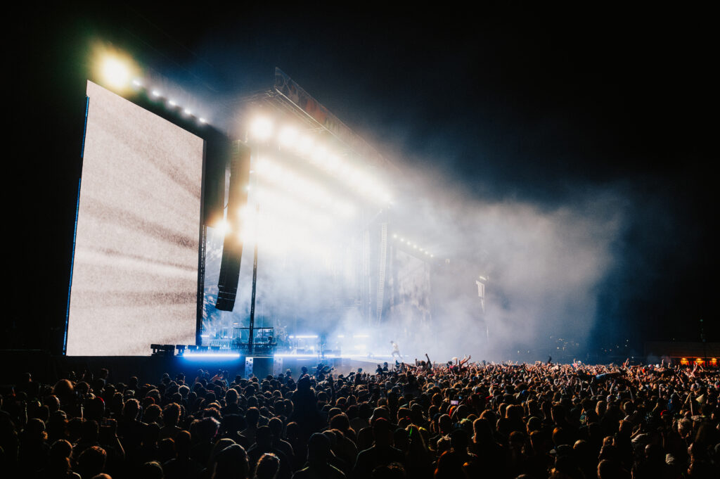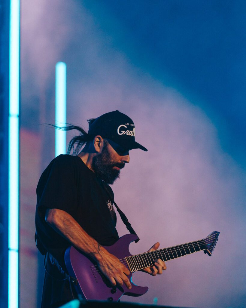 By 10 p.m., the air had cooled just enough for Deftones to step into their element. The Main Stage shimmered under pale blue lights as Be Quiet and Drive (Far Away) opened the set — ethereal, emotional, untouchable.