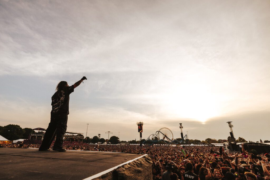 Day three of Louder Than Life, and fatigue still hasn’t found its way into the veins of Louisville. The Kentucky sun is merciless once again, baking the sprawling Exposition Center grounds in shimmering heat. You can feel it — something is different about this day. The lineup reads like a modern metal dream: Deftones, Bad Omens, I Prevail, Black Veil Brides, Stone Temple Pilots, Ra, Versus Me. The dust is rising early, the air smells of barbecue and bourbon, and even though the prices are steep, no one seems to care.
