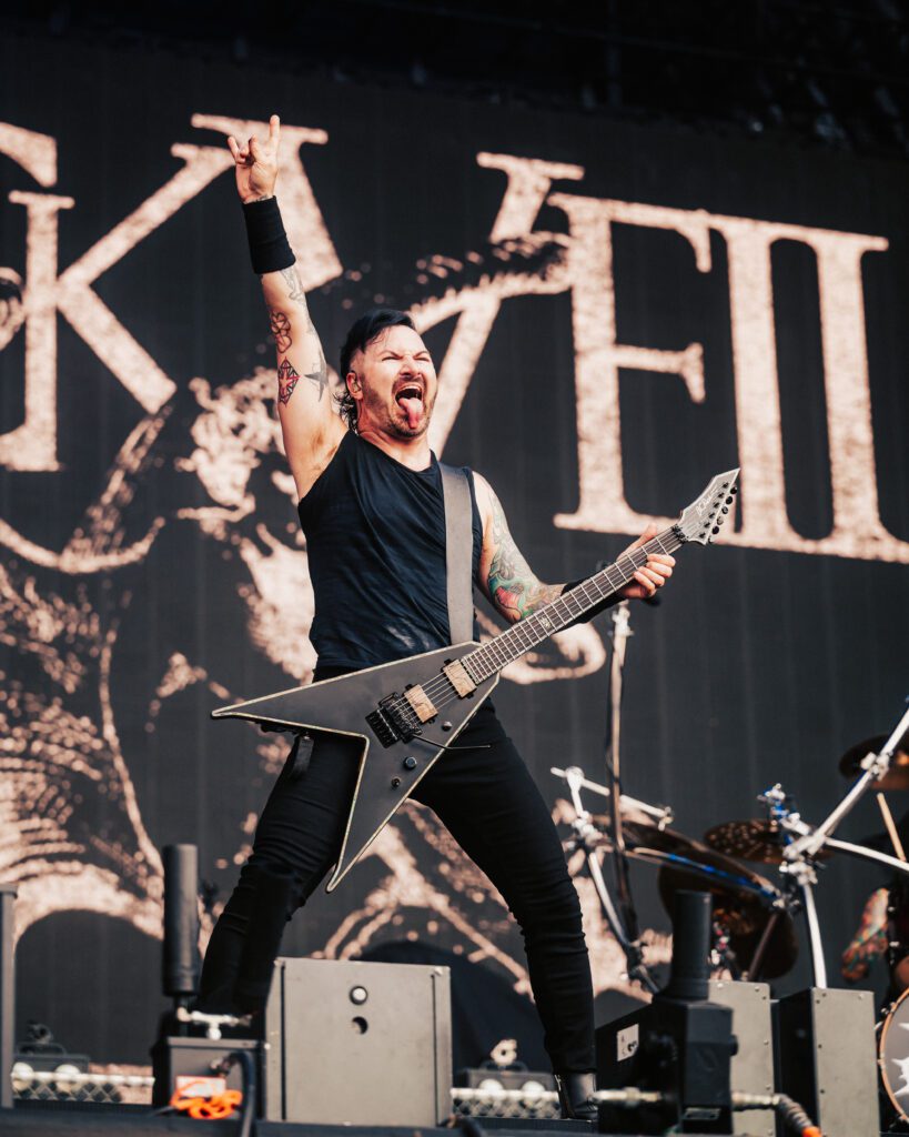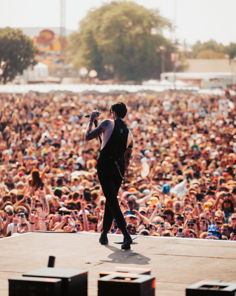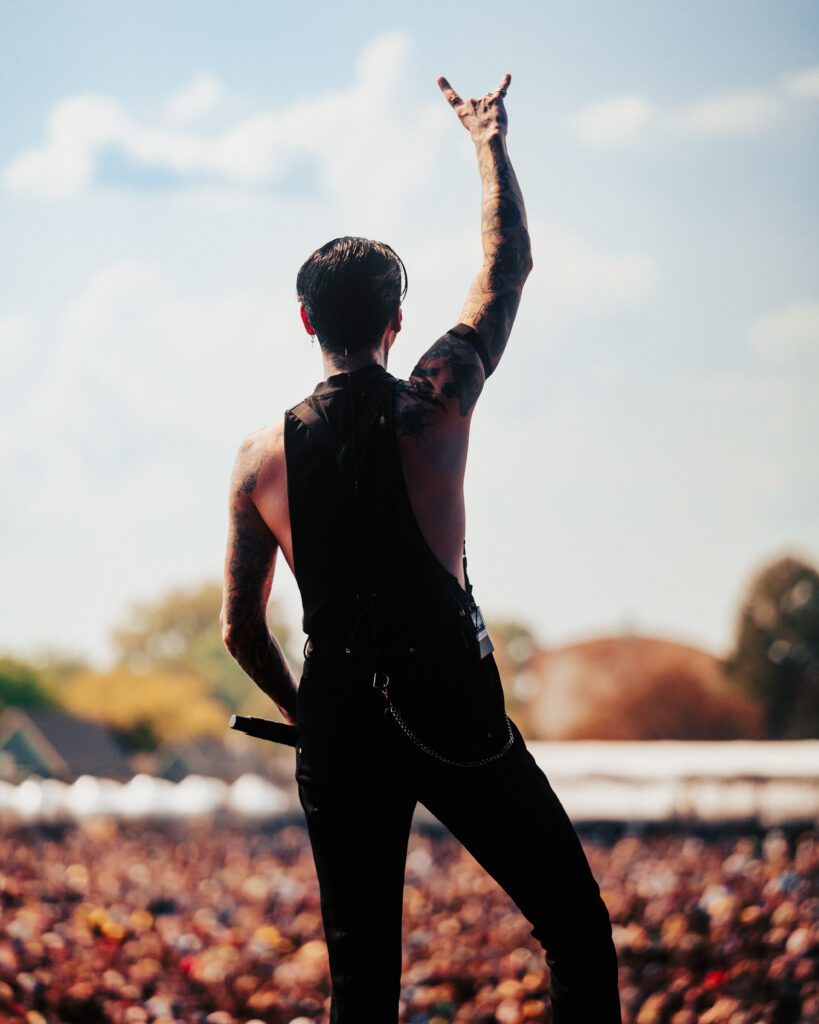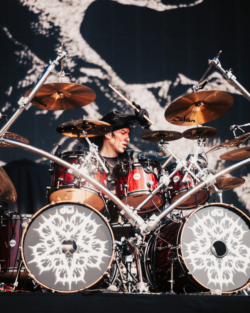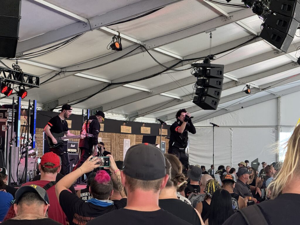 Black Veil Brides stormed the Blister Stage in the afternoon heat. Andy Biersack, dressed in black and gold, commanded the crowd like a rock preacher. Crimson Skies, Fallen Angels, and Rebel Love Song filled the air, their theatricality blending perfectly with the glare of the sun.