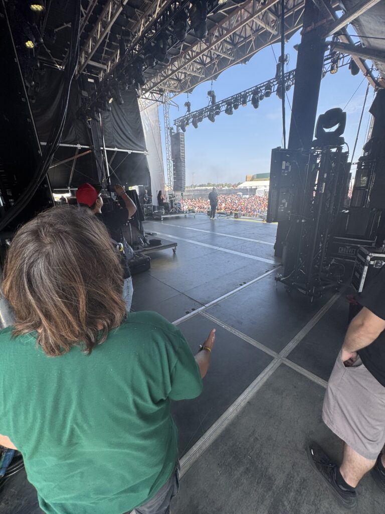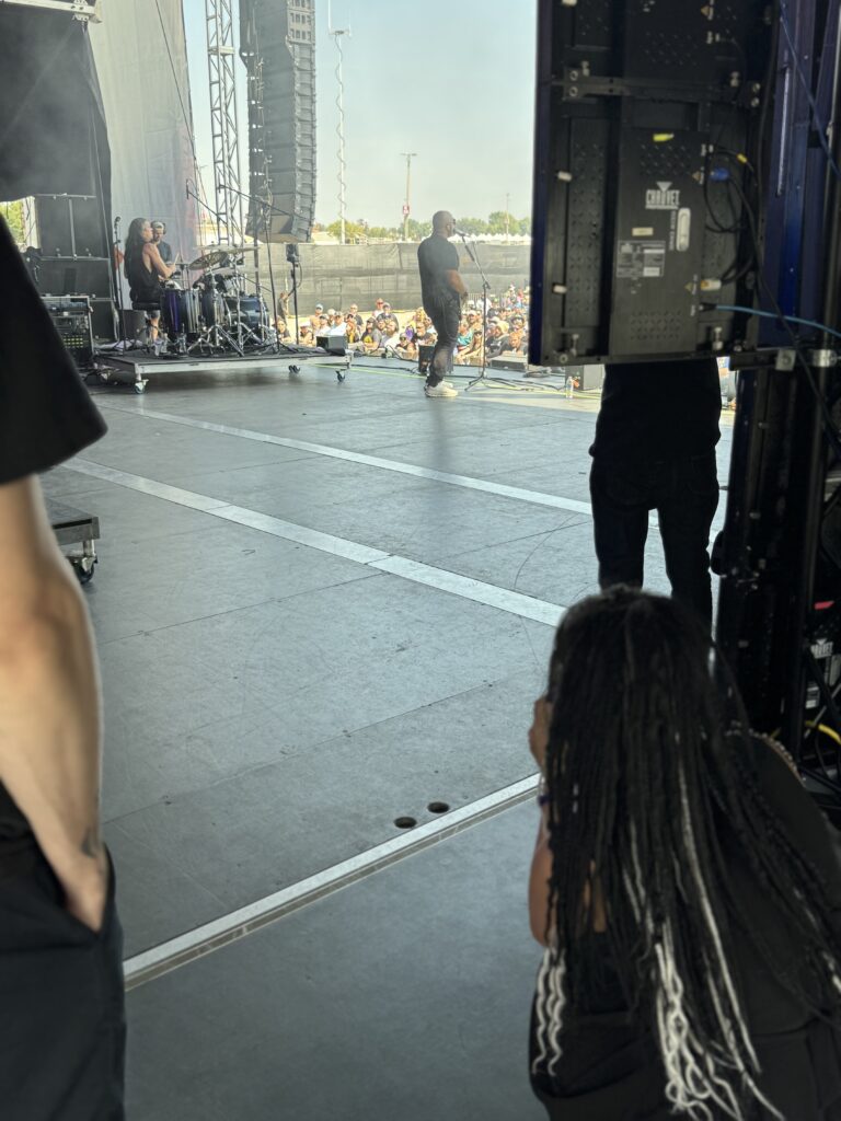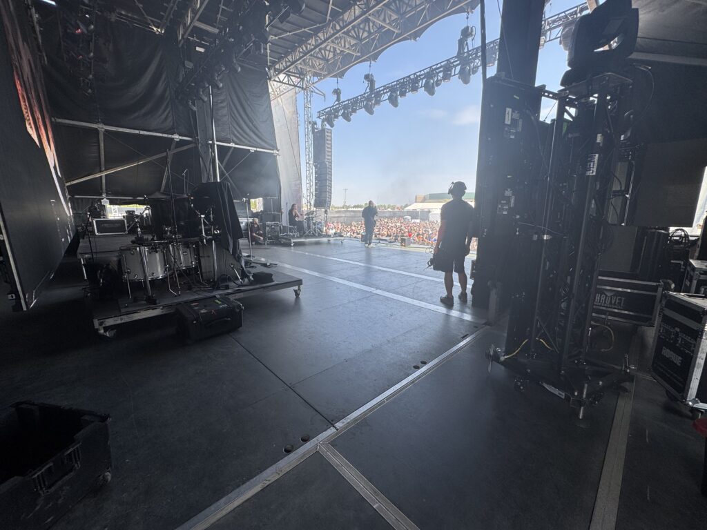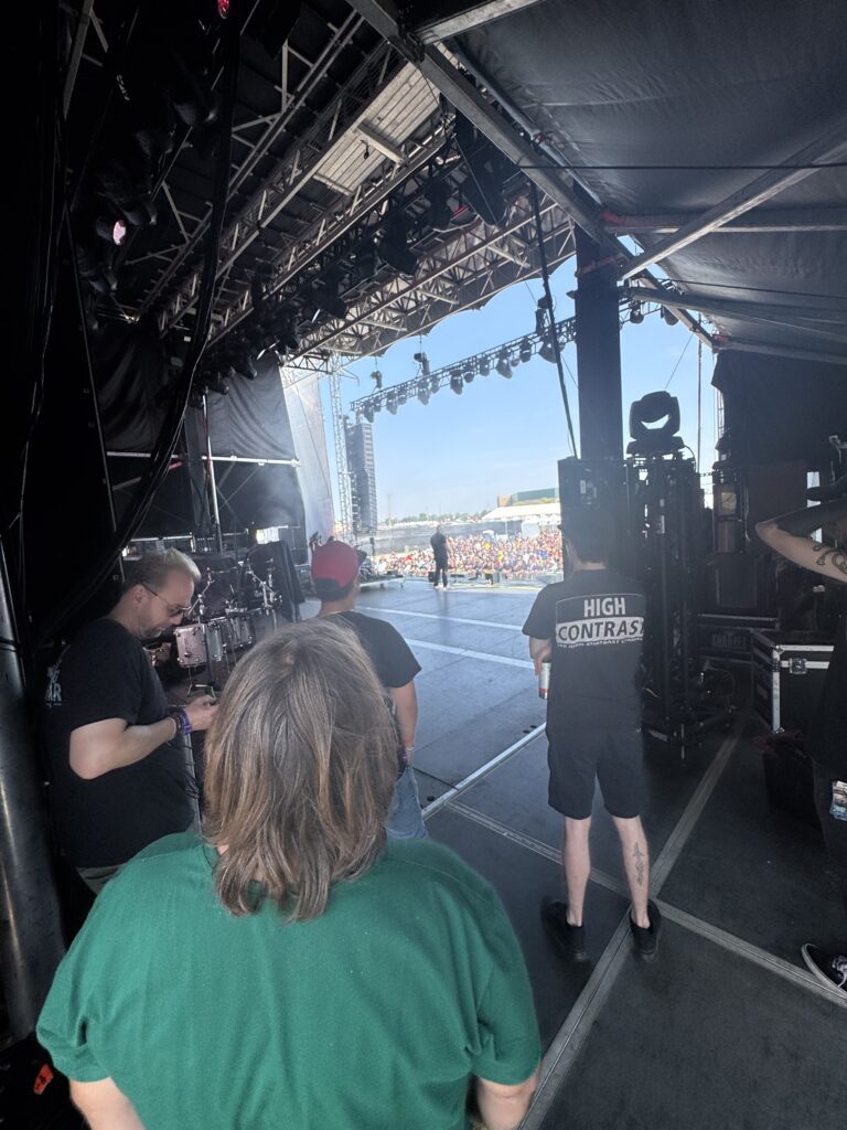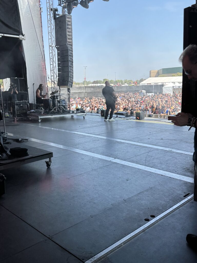 What made this set truly special, though, was a rare personal experience: we were invited by the singer’s wife to watch part of the show from the side stage. It was one of those subtle, unforgettable moments — standing behind the amps, feeling the low-end vibrations through the wood, watching the band’s focus between songs, and seeing the crowd’s waves from an entirely different angle.