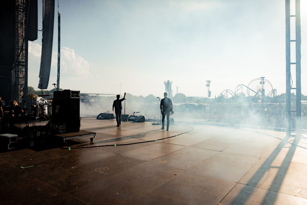 The turnout — between ten and twenty thousand — was impressive for the hour, even if the heat drove some fans to the shade. Mid-set, the performance came to a sudden halt: a medical emergency in the crowd. The silence was heavy until the situation resolved, and Andy took a moment to thank the medics before returning to finish strong. In the End closed the set in an emotional surge that reminded everyone why this band still matters.