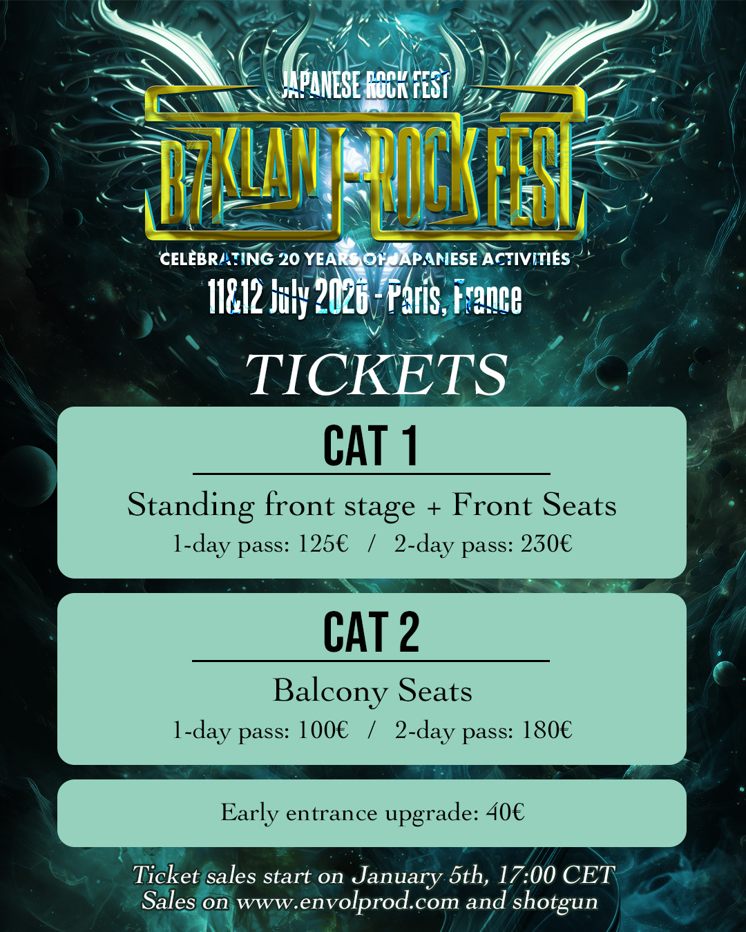 Le B7KLAN J-Rock Fest ouvre sa billetterie. Rendez-vous vendredi 10 et samedi 11 juillet 2026 à l’Arena Grand Paris (1 rue du Grand Paris, 91300 Massy) pour deux jours dédiés au Visual Kei.